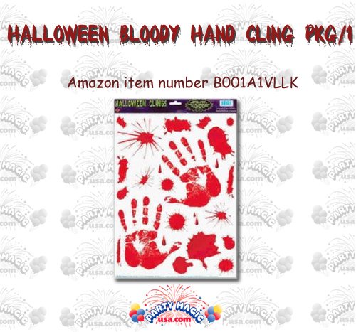 Each sheet of these Halloween Clings has 22 removable and reusable bloody window clings. These will adhere to most nonporous surfaces, such as windows and mirrors without using tape or adhesive. Warning: Please keep all plastic films away from young children. Bring Your Windows To Life! Window FrienBloody Handprint Clings Party Accessory (1 count) (22/Sh) Do not Miss!!